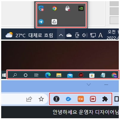 -pc하단 숨겨진 아이콘, pc 작업표시줄, 브라우저 확장프로그램에